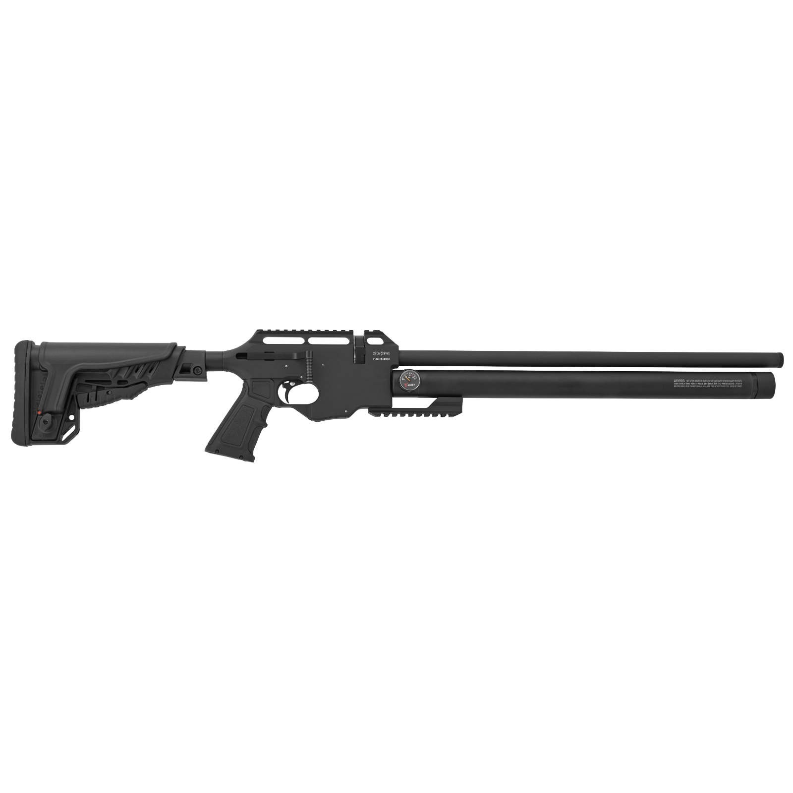 Reximex Force er et kompakt og alsidigt PCP luftgevær med side lever-lading og taktisk teleskopisk syntetisk skæfte, designet til både præcisionsskydning og jagt. Det justerbare kindstykke sikrer optimal komfort og gentageligt anlæg, mens det teleskopiske skæfte kan tilpasses i længde fra 950 mm til 1030 mm, så geværet passer til enhver skytte.