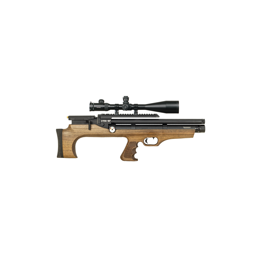 Med en 210 cc lufttank ved 200 BAR fyldningstryk leverer Lyra BP op til 60 skud i .177-kaliber — alt sammen i en pakke der kun vejer 3,1 kg. Den ideelle løsning til jægeren eller skytten der ønsker maksimal ydeevne i et minimalt format.