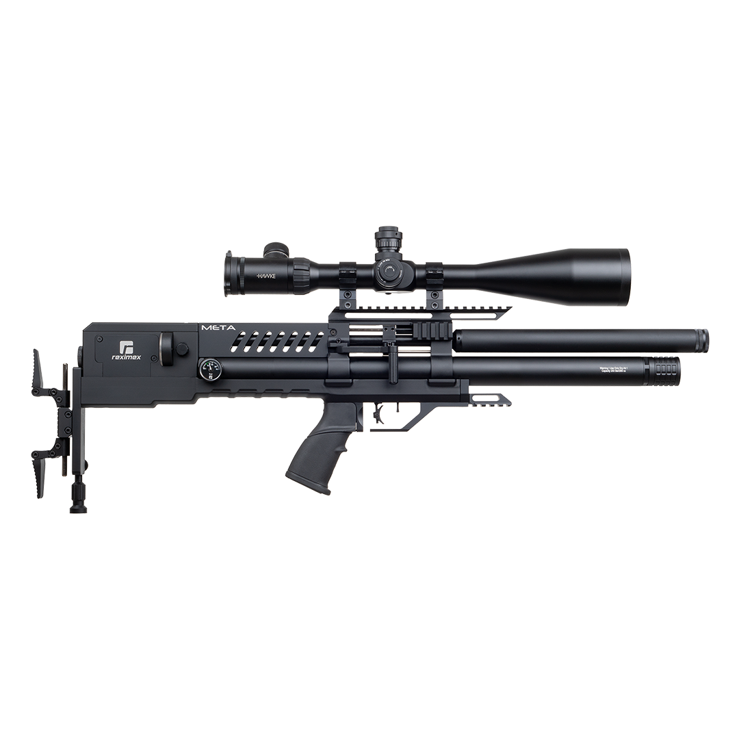 Reximex Meta er et taktisk bullpup PCP luftgevær med et kompromisløst funktionelt design, bygget til skytten der kræver præcision, justerbarhed og kompakt håndtering. Med en totallængde på blot 750 mm og et fuldt 480 mm løb pakker Meta maksimal ydeevne ind i en ultrakompakt platform.